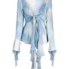 Elevate your look with our exclusive blouse. Features a premium polyester-cotton woven fabric composition, full length ruched butterfly sleeves, with a decorative mid-drift sash for an iconic summer look. Be the center of attention all season long.